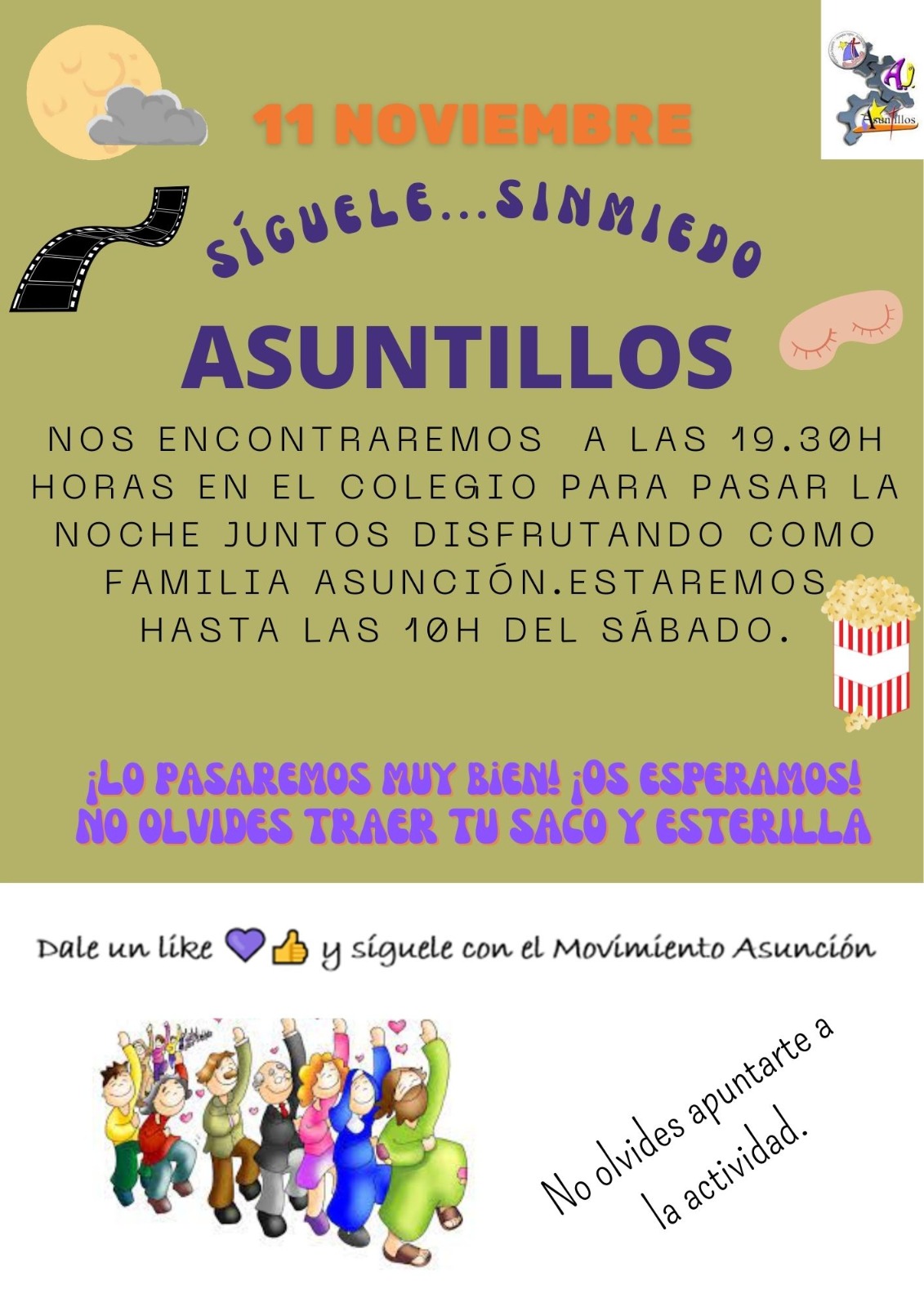 Síguele, sin miedo. Seguimos al Señor Jesús, con confianza y sin miedo en esta actividad de Asuntillos de noviembre. Se pretende fomentar la convivencia entre monitores y los Asuntillos y el sentido de pertenencia a la familia Asunción.