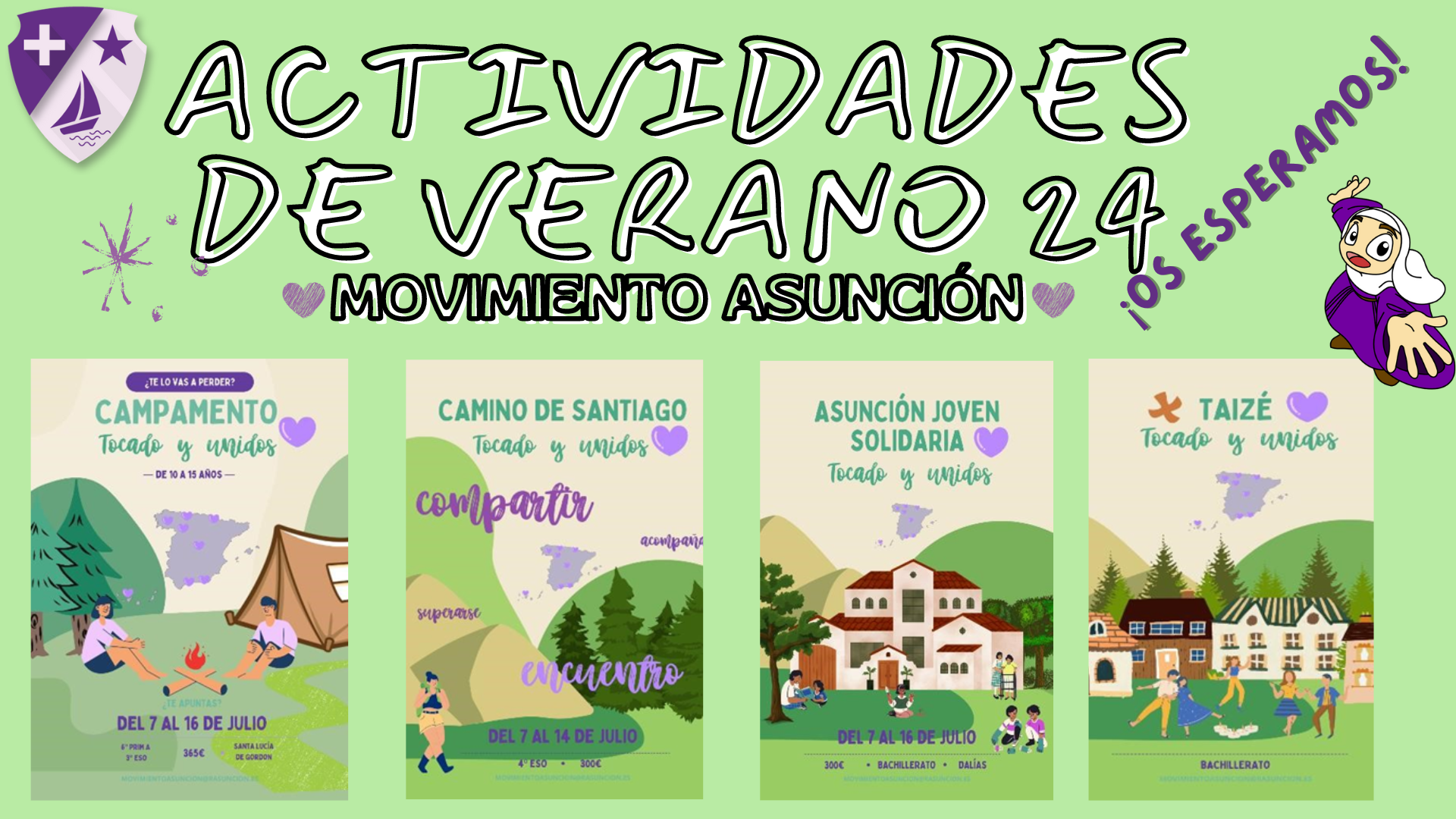 Desde el Movimiento Asunción queremos presentarles las actividades que van a tener lugar este verano 2024. Todas ellas pretenden dar continuidad a la formación de sus hijos desde el sueño concreto de Santa Mª Eugenia de transformar la sociedad desde el Evangelio.