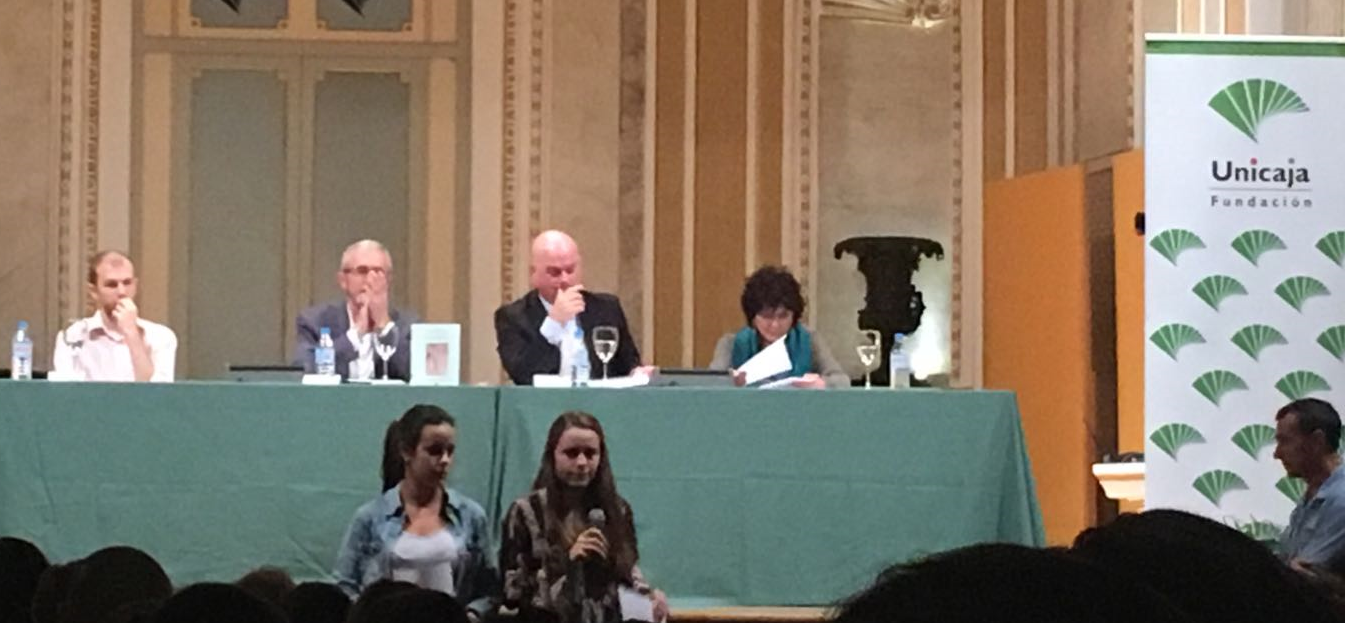 Los alumnos de segundo de Bachillerato participan en una nueva temporada de Versos en Unicaja que hoy se inaugura con un homenaje a la figura del poeta cordobés Pablo García Baena. Mercedes García-Alarcón y Lola Altamirano han recitado sendos poemas.