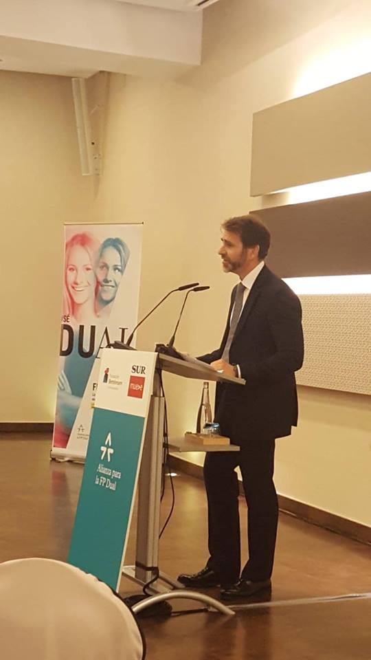 Nuestro Colegio desarrolla una gran labor en el campo de la formación profesional en el ámbito DUAL donde se compagina el estudio en clase con la práctica en la empresa. Ayer participamos en el Foro de la FP DUAL.