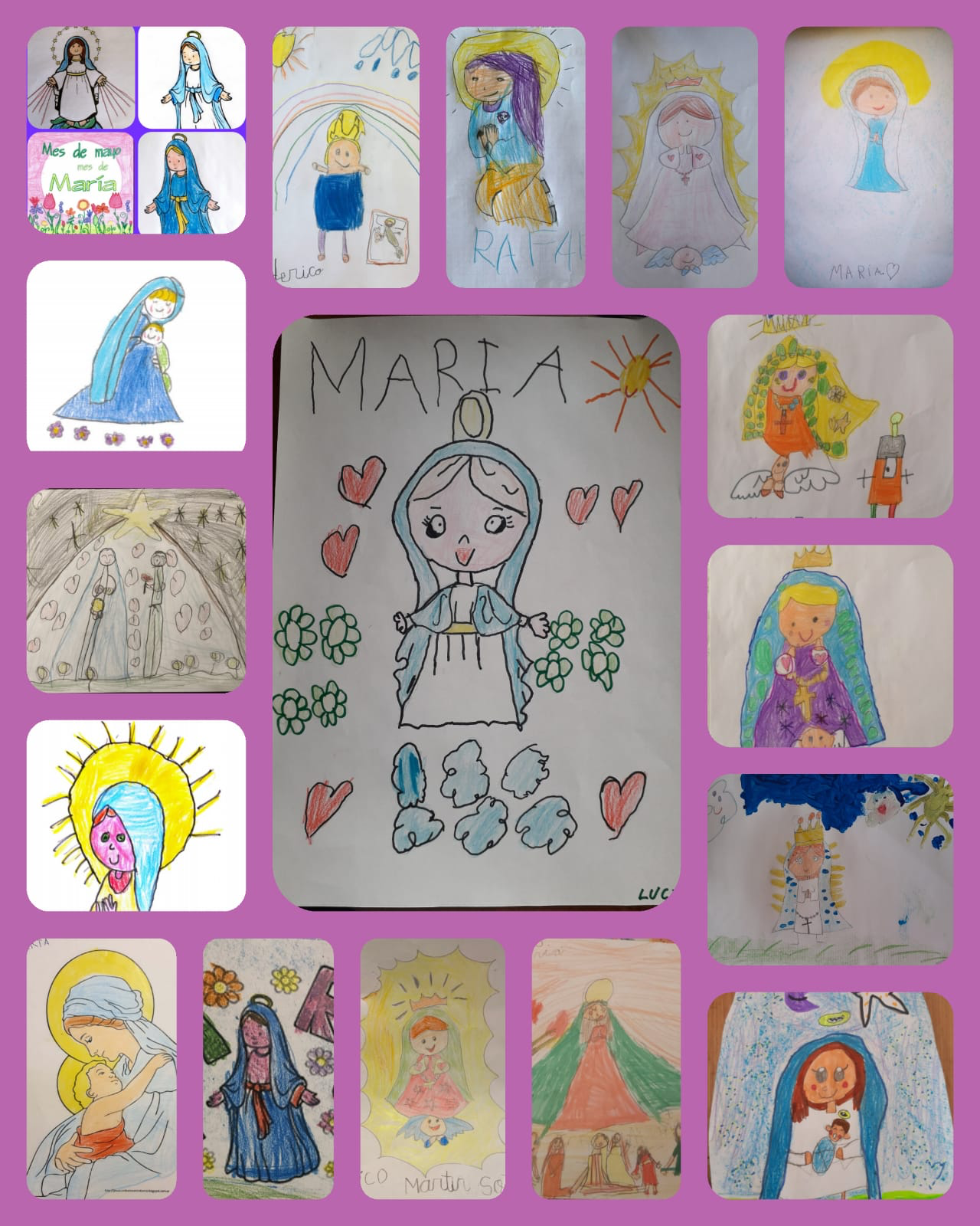 Terminamos el mes de Mayo y nuestros niños quieren hacerle un homenaje a la Virgen con sus dibujos . ¿Habéis visto que bonitos son?