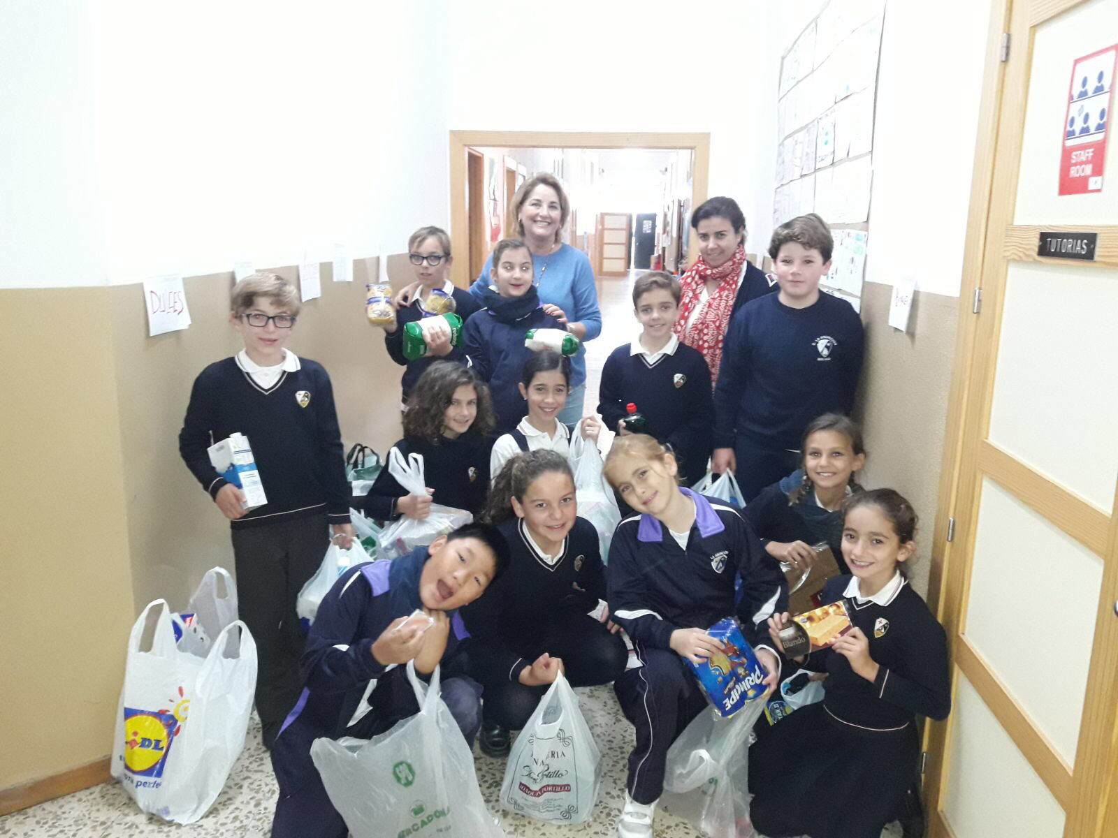 Recogida de alimentos en la campaña de Navidad por alumnos del tercer ciclo de primaria en colaboración con la ESO.