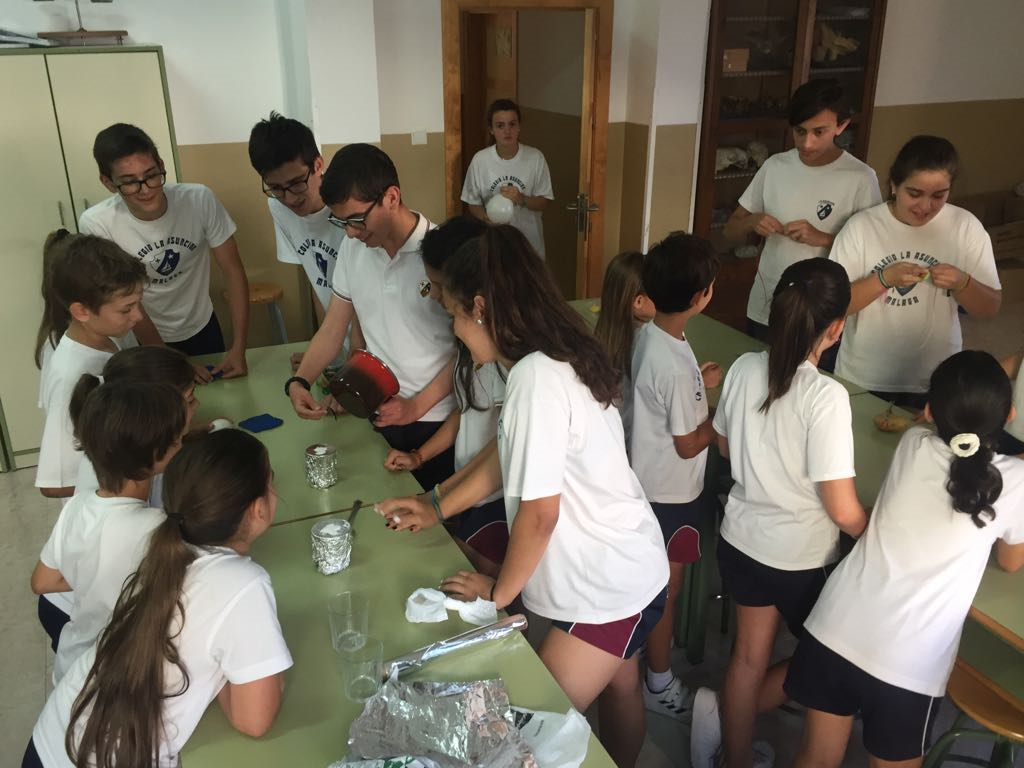 Un grupo de estos alumnos junto con su profesora de Física y Química, Loli Bellido, organizaron experimentos, actividades lúdicas, juegos interactivos y concursos relacionados con la ciencia con el objetivo de acercar a los alumnos de 4º de primaria al conocimiento científico de forma divertida.