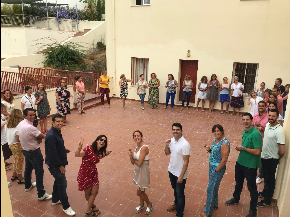 El claustro de infantil y primaria comienza el curso, enredado en color morado, con grandes deseos de dar la vuelta al mundo desde los pequeños gestos cotidianos.