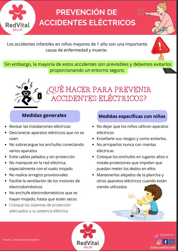 🔌 ¡Prevengamos accidentes eléctricos! ⚡ Nuestra enfermería ha preparado una infografía clara y útil para saber cómo actuar y prevenir riesgos eléctricos.
