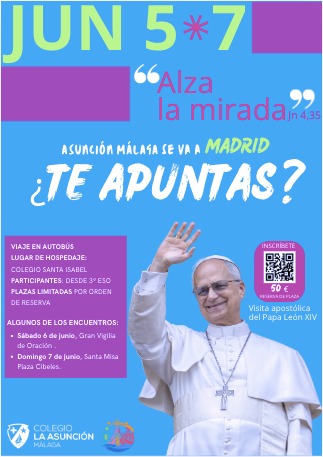 Os informarmos de una actividad que nos llena de ilusión y que hemos organizado desde el colegio con motivo de la visita apostólica del Papa León XIV a Madrid el próximo mes de junio.